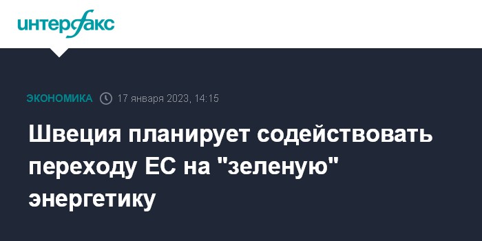 Швеция планирует содействовать переходу ЕС на "зеленую" энергетику
