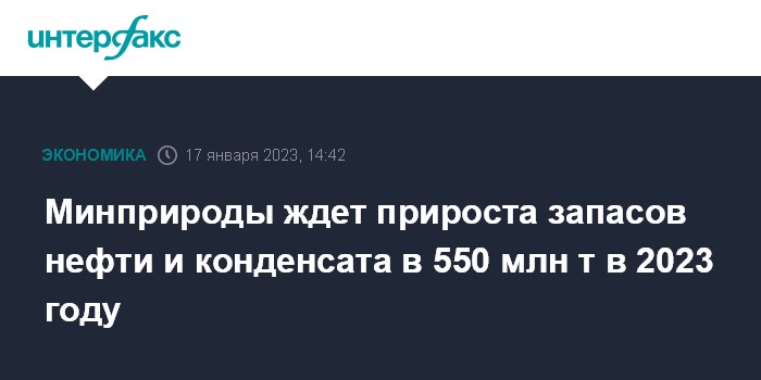 Ранее Минприроды сообщало, что прирост запасов нефти и конденсата в стране по итогам геологоразведочных работ 2022 года составит 600 млн тонн, газа - 675 млрд кубических метров.
