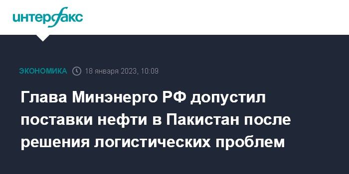 Глава Минэнерго РФ допустил поставки нефти в Пакистан после решения логистических проблем
