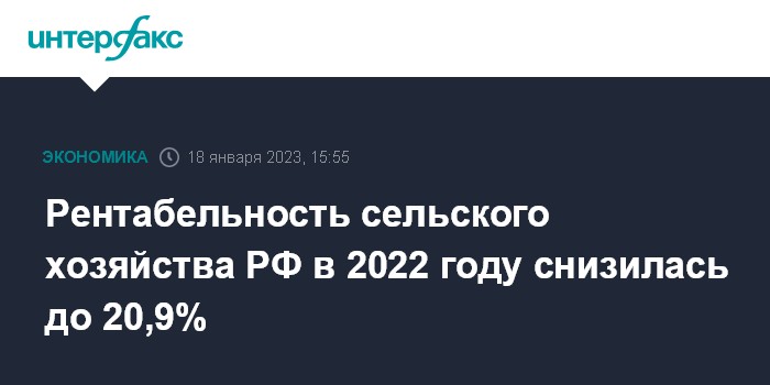 Рентабельность сельского хозяйства РФ в 2022 году снизилась до 20,9%