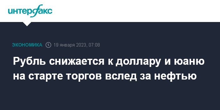 Москва. 19 января. INTERFAX.RU - Доллар США и юань укрепляются на Московской бирже на старте торгов в четверг, рубль слабеет на фоне снижения нефтяных цен и нестабильной ситуации на мировых рынках капитала.