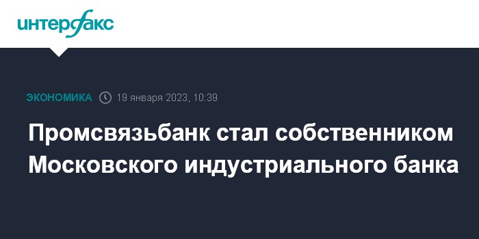 Москва. 19 января. INTERFAX.RU - Промсвязьбанк внес в уставной капитал 100% акций Московского индустриального банка (МИнБ), следует из данных ЕГРЮЛ.