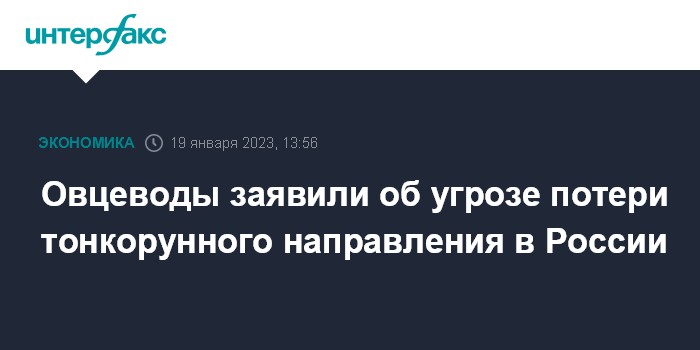 Мы сейчас можем потерять это направление (тонкорунное овцеводство - ИФ), которое создавалось десятилетиями, потому что шерстное и шерстно-мясное направление не конкурентно. Самые большие потери имеет тонкорунное овцеводство. Надо его сохранить и придать ему новый импульс", - заявил он и одним из способов спасения направления назвал улучшение мясных качеств овец при сохранении тонкой шерсти. Он напомнил, что в стране для этого есть селекционные центры.