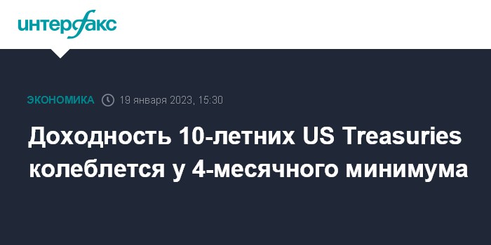 Москва. 19 января. INTERFAX.RU - Доходность казначейских облигаций США колеблется вблизи многомесячных минимумов на опасениях по поводу американской экономики.