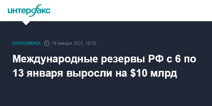 Международные резервы РФ с 6 по 13 января выросли на $10 млрд