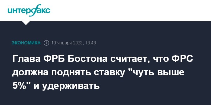 Глава ФРБ Бостона считает, что ФРС должна поднять ставку "чуть выше 5%" и удерживать