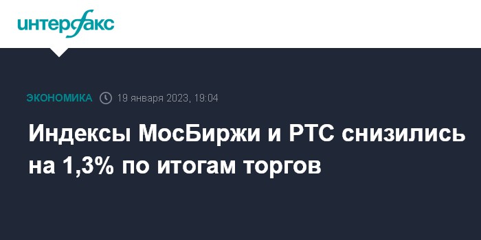 Индексы МосБиржи и РТС снизились на 1,3% по итогам торгов
