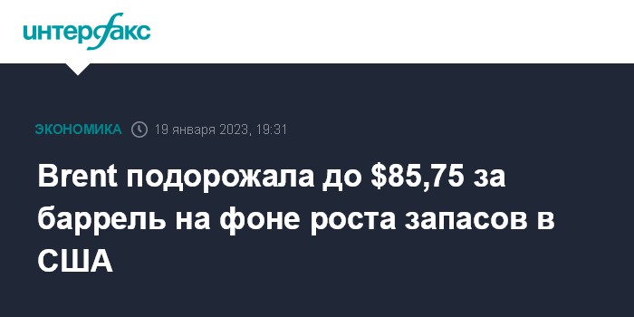 Brent подорожала до $85,75 за баррель на фоне роста запасов в США