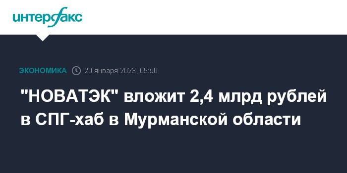 "НОВАТЭК" вложит 2,4 млрд рублей в СПГ-хаб в Мурманской области
