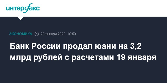 Банк России продал юани на 3,2 млрд рублей с расчетами 19 января