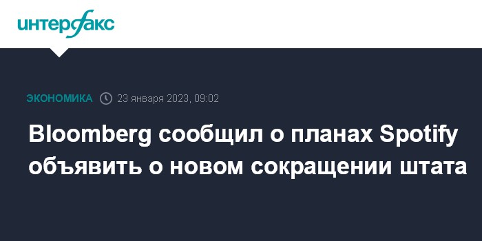 Москва. 23 января. INTERFAX.RU - Шведская Spotify Technology, оператор одноименного музыкального стримингового сервиса, планирует объявить о новом сокращении штата на этой неделе, сообщило агентство Bloomberg со ссылкой на источники.