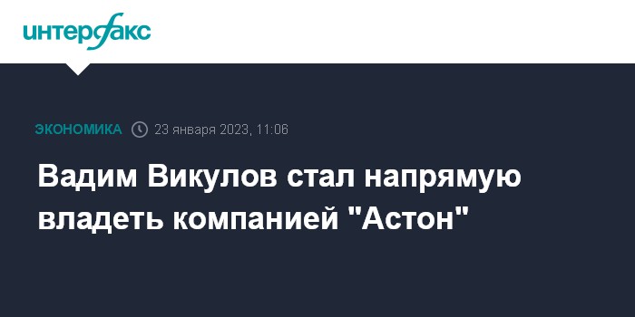 Москва. 23 января. INTERFAX.RU - Вадим Викулов, основатель ГК "Астон", одного из ведущих агрохолдингов РФ, стал напрямую владеть АО "Астон", сообщается в ЕГРЮЛ.