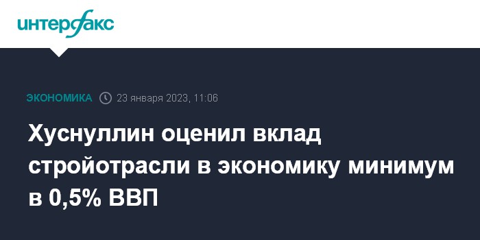 Москва. 23 января. INTERFAX.RU - Вклад строительной отрасли в ВВП России по итогам года составит не менее 0,5%, сказал вице-премьер Марат Хуснуллин в понедельник.