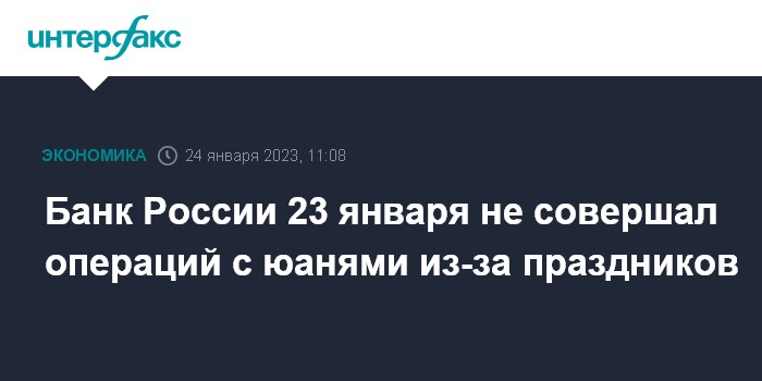 Банк России 23 января не совершал операций с юанями из-за праздников