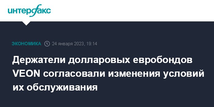Москва. 24 января. INTERFAX.RU - Держатели двух выпусков долларовых еврооблигаций телекоммуникационного холдинга VEON согласовали ранее предложенную компанией схему по изменению их обслуживания, следует из сообщения холдинга.