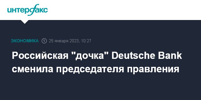Москва. 25 января. INTERFAX.RU - Российская "дочка" Deutsche Bank сменила председателя правления, свидетельствуют данные ЕГРЮЛ.