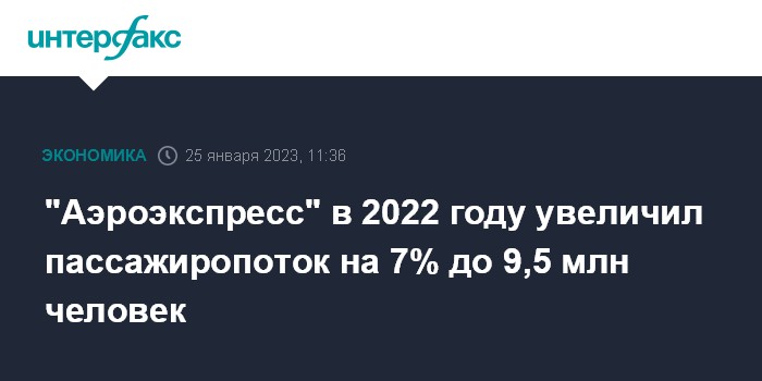 Москва. 25 января. INTERFAX.RU - ООО "Аэроэкспресс" в 2022 году нарастило пассажиропоток на 7% в сравнении с 2021 годом, до 9,5 млн человек, сообщила пресс-служба перевозчика.