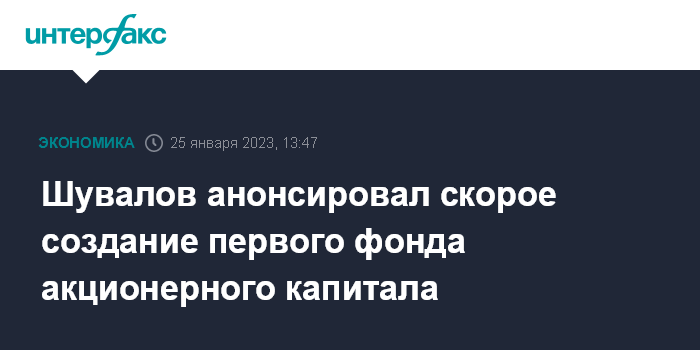 Шувалов анонсировал скорое создание первого фонда акционерного капитала
