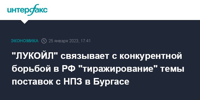 "ЛУКОЙЛ" связывает с конкурентной борьбой в РФ "тиражирование" темы поставок с НПЗ в Бургасе