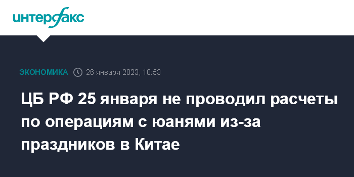 ЦБ РФ 25 января не проводил расчеты по операциям с юанями из-за праздников в Китае