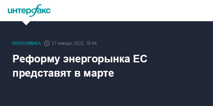 Москва. 27 января. INTERFAX.RU - Реформа рынка электроэнергии Европейского Союза (ЕС), предусматривающая отвязку цены электроэнергии от цены на газ, будет представлена в марте, сообщил член Европейской Комиссии (ЕК) Виргиниюс Синкявичюс, отвечающий в ЕК за вопросы окружающей среды, водных ресурсов и рыболовства.
