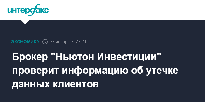 Брокер "Ньютон Инвестиции" проверит информацию об утечке данных клиентов