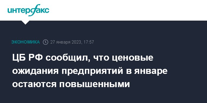 ЦБ РФ сообщил, что ценовые ожидания предприятий в январе остаются повышенными