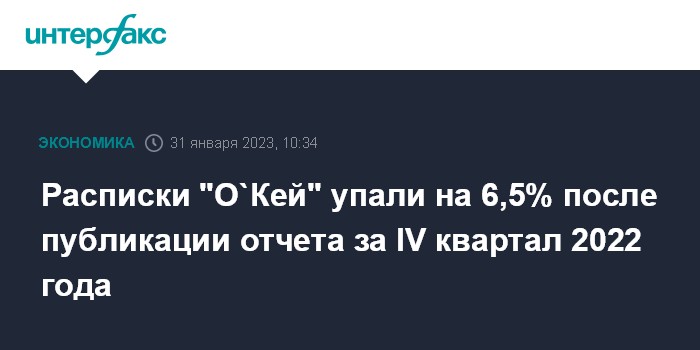 Расписки "О`Кей" упали на 6,5% после публикации отчета за IV квартал 2022 года