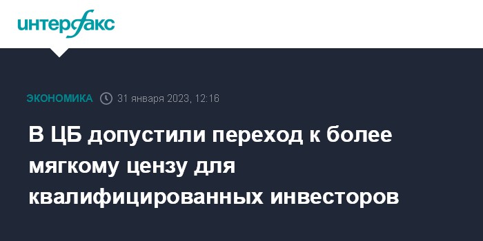Москва. 31 января. INTERFAX.RU - Банк России может выбрать более мягкий вариант повышения имущественного ценза для признания инвестора квалифицированным.