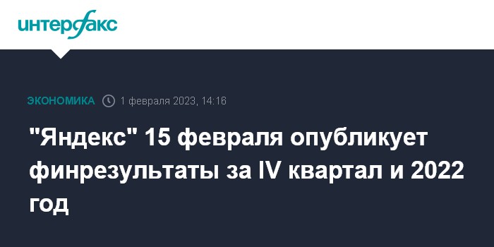 "Яндекс" 15 февраля опубликует финрезультаты за IV квартал и 2022 год