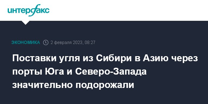 Поставки угля из Сибири в Азию через порты Юга и Северо-Запада значительно подорожали