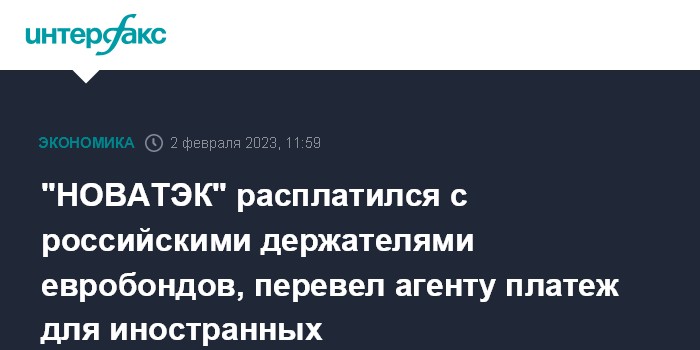 "НОВАТЭК" расплатился с российскими держателями евробондов, перевел агенту платеж для иностранных