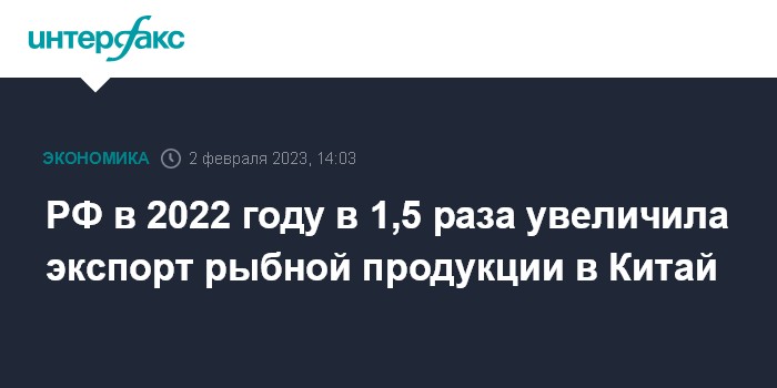 РФ в 2022 году в 1,5 раза увеличила экспорт рыбной продукции в Китай