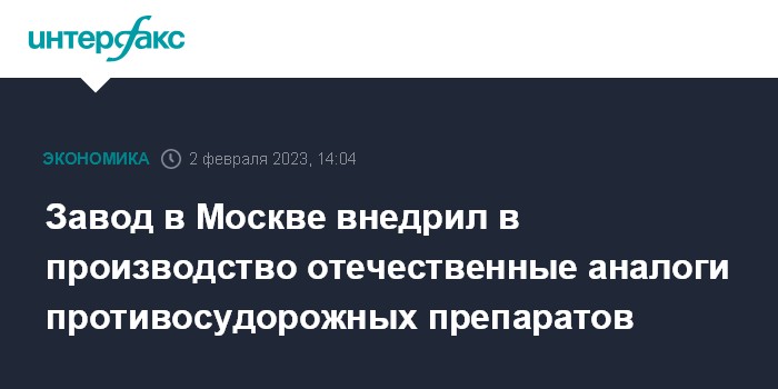 Завод в Москве внедрил в производство отечественные аналоги противосудорожных препаратов