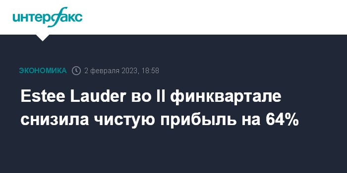 Москва. 2 февраля. INTERFAX.RU - Американский производитель косметики и парфюмерии Estee Lauder Cos во втором квартале 2023 финансового года снизила чистую прибыль на 64%, дала слабый годовой прогноз.