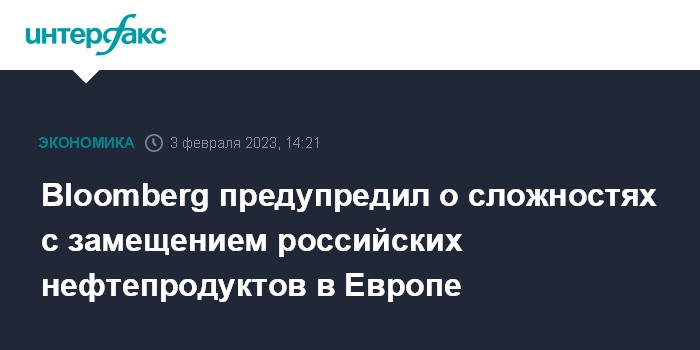 Москва. 3 февраля. INTERFAX.RU - Введение Евросоюзом эмбарго на поставки российских нефтепродуктов с 5 февраля требует, чтобы страны Европы нашли альтернативные источники закупки топлива, в том числе, на Ближнем Востоке.
