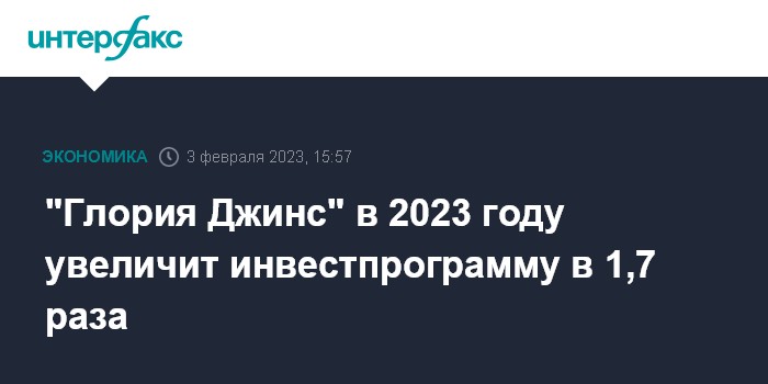 "Глория Джинс" в 2023 году увеличит инвестпрограмму в 1,7 раза