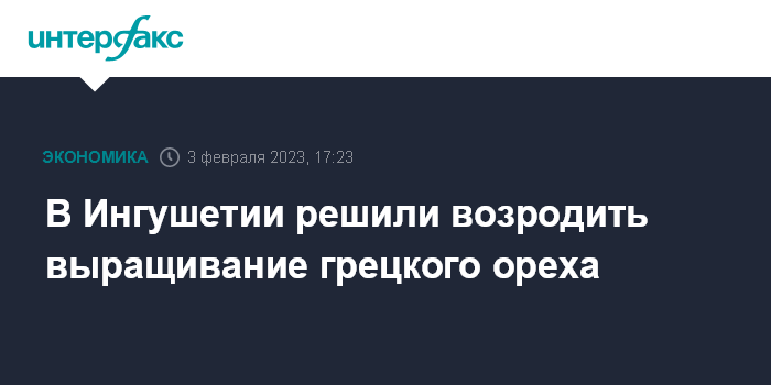 Москва. 3 февраля. INTERFAX.RU - Власти Ингушетии решили возродить производство грецкого ореха в регионе и собираются передать 550 гектаров заброшенных территорий ореховых садов местным предпринимателям.