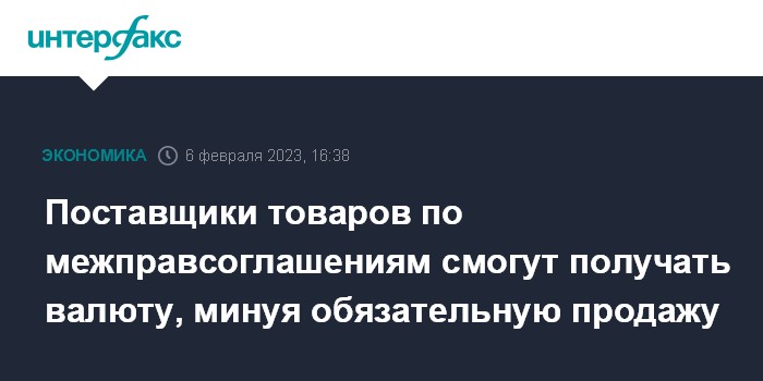 Поставщики товаров по межправсоглашениям смогут получать валюту, минуя обязательную продажу