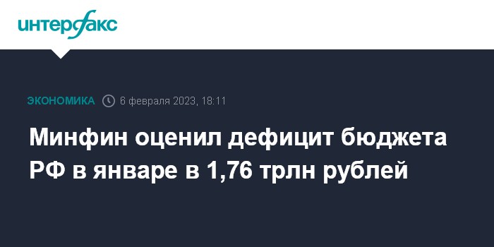 Минфин оценил дефицит бюджета РФ в январе в 1,76 трлн рублей