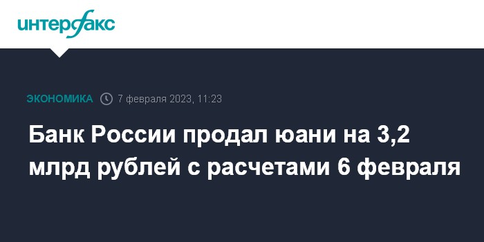 Банк России продал юани на 3,2 млрд рублей с расчетами 6 февраля