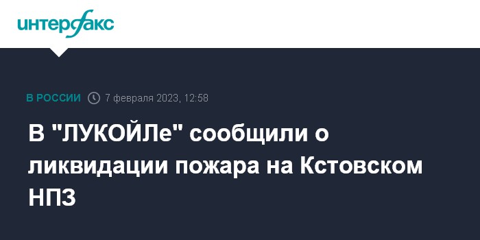 О пожаре на Кстовском НПЗ ранее сообщила прокуратура Нижегородской области. В "ЛУКОЙЛ-Нижегороднефтеоргсинтезе" "Интерфаксу" подтвердили факт возгорания.