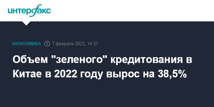 Объем "зеленого" кредитования в Китае в 2022 году вырос на 38,5%