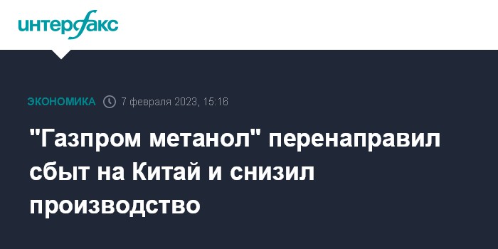"Газпром метанол" перенаправил сбыт на Китай и снизил производство