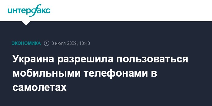 Киев. 3 июля. INTERFAX.RU - Кабинет министров Украины разрешил пользоваться мобильной связью на бортах самолетов над территорией страны.