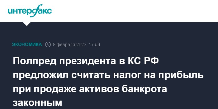 Полпред президента в КС РФ предложил считать налог на прибыль при продаже активов банкрота законным