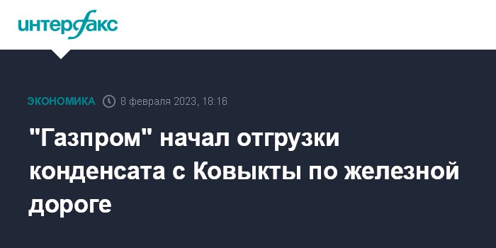 "Газпром" начал отгрузки конденсата с Ковыкты по железной дороге