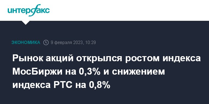 Рынок акций открылся ростом индекса МосБиржи на 0,3% и снижением индекса РТС на 0,8%