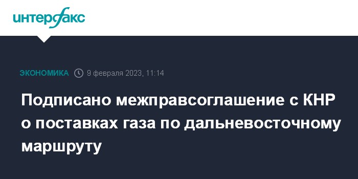 Москва. 9 февраля. INTERFAX.RU - Россия и Китай подписали межправительственное соглашение о поставках газа в КНР по дальневосточному маршруту, сообщили в российском Минэнерго.
