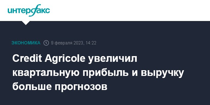 Москва. 9 февраля. INTERFAX.RU - В IV квартале 2022 года французская банковская группа Credit Agricole Group зафиксировала рост чистой прибыли и выручки лучше прогнозов аналитиков.